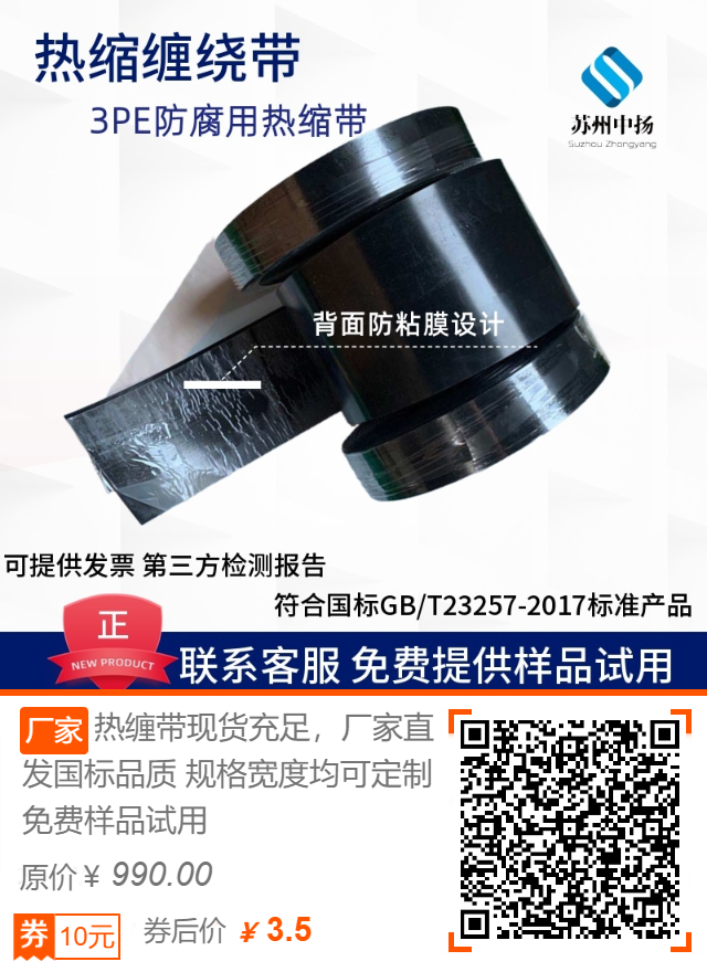 这几种产品都是3PE防腐材料,是目前管道防腐最常用的产品,热缩带主要用于管道补口焊接后的防腐施工,热缩套是需要在管道焊接前套上的防腐材料,热缩缠绕带是针对于弯管,三通,少量直管等防腐,当然这几种产品的应用场景都很广泛,比如储罐外防腐,码头桩把防腐,阀门,变径管防腐等,可根据具体施工现场要求来确认使用。