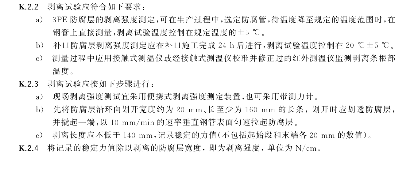 最关键的还是剥离强度测试,按国标要求,是剥离强度≥50N/每公分并80%表面呈内聚破坏状。剥离时的管体温度是15-25℃,环境温度这一点很重要,之前有项目就是施工单位大夏天顶着太阳底下做剥离,钢管表面温度晒到了50多℃,常温的热缩带,胶层都晒软了。
